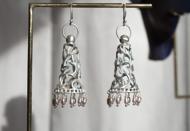 Nous travaillons à quatre mains avec ma compagne. De par nos trajectoires, une sur le fil de la matière textile et l’autre dans le champ des matières en fusion, nous avons composé une identité double. Dans leur dualité, métal et textile se sont embrassés.