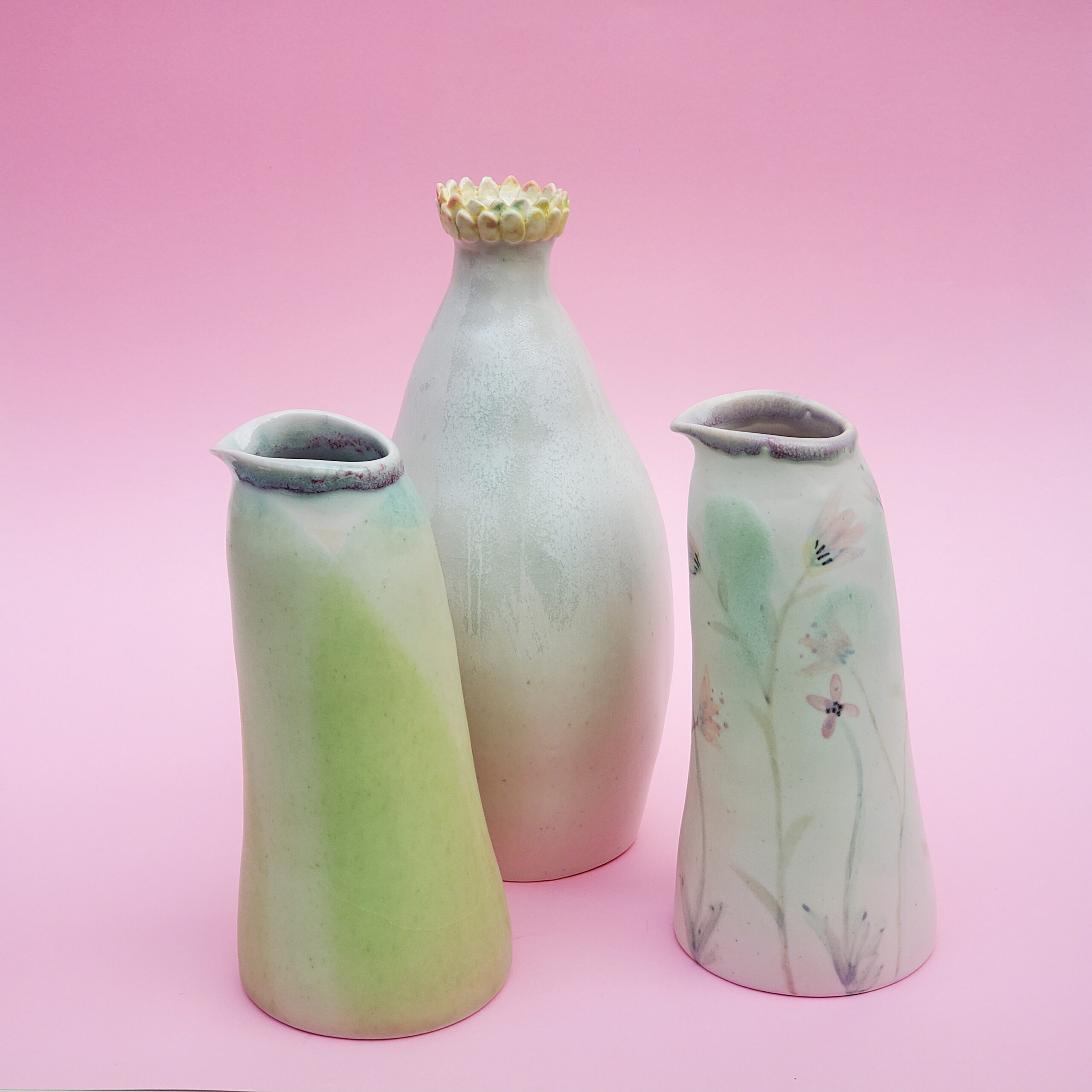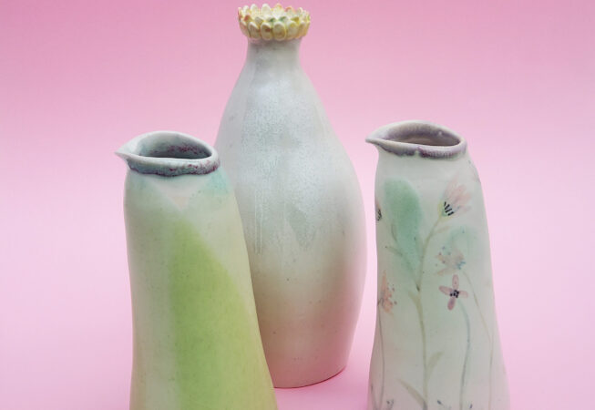 Je suis céramiste, installée dans la baie du mont-saint-michel à Avranches. Je crée des objets utilitaires et des bijoux en porcelaine. Chaque pièce est unique. Je cherche  à décorer ou  à expérimenter l’émaillage  pour chacune de mes pièces. Je conçois mes bijoux comme des sculptures miniatures à porter , inspirés par les matériaux qui m’entourent et le monde végétal.