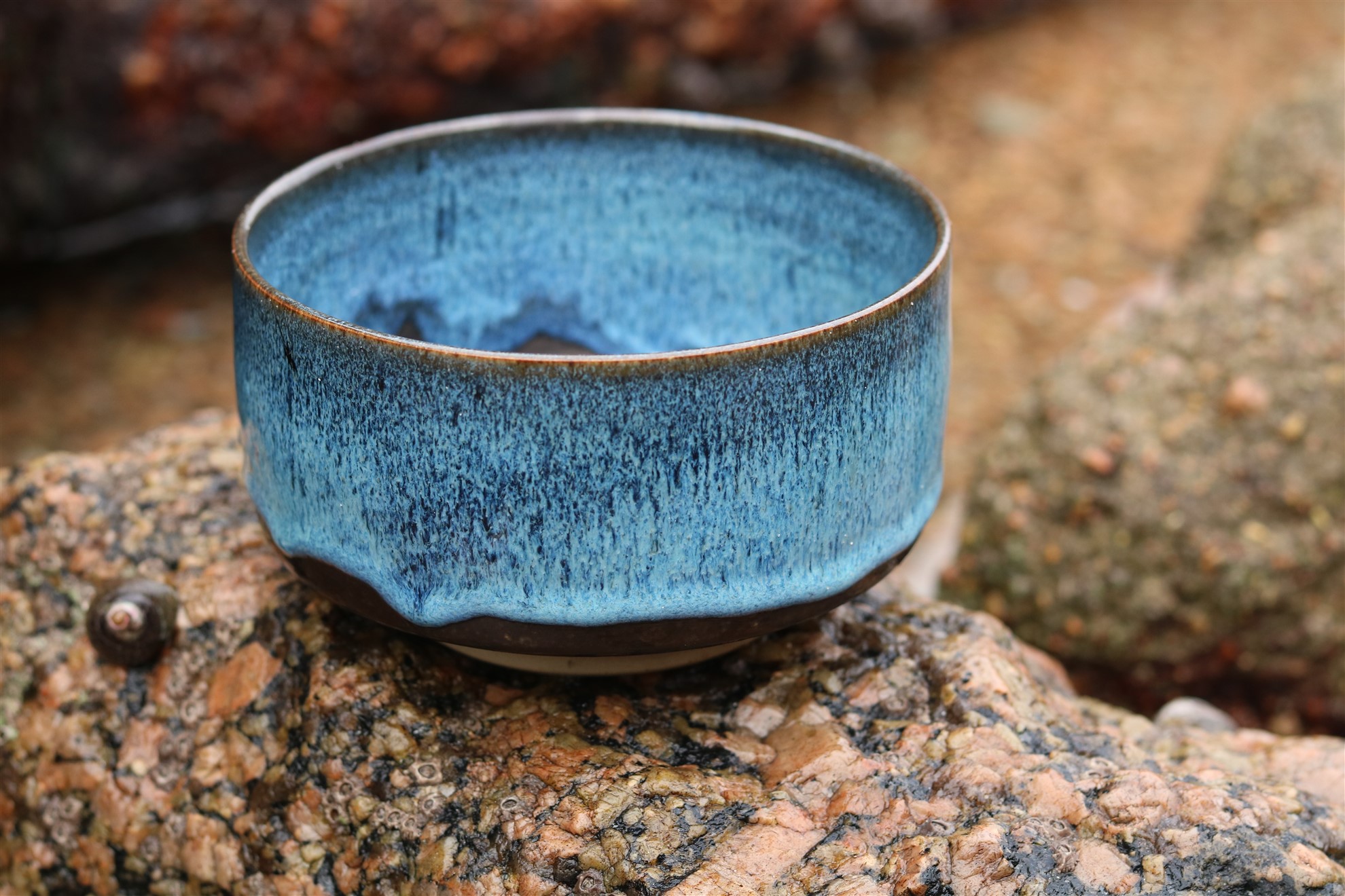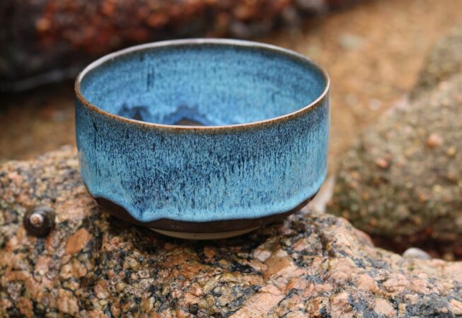 je réalise des pièces au tournage principalement et mes cuissons sont au gaz et en éléctrique ,1280-1300 .je recherche des formes épurées et sobres, harmonieuses et simples. J’ attache beaucoup d’ importance a l’équilibre entre esthétique et utilité au quotidien. Mes émaux vont vers une dominante de bleu sur noir , mais aussi turquoise vert, noir mat et blanc aussi. je cherche des effets par sgraffite, mais aussi par décor pointilliste sur émail. jutilise beaucoup la cendre de bois pour mes couvertes(fougère,peuplier,eucalyptus,aubépine,etc ).pour finir , je crée des cloches en grés (inspiration japonaise) pour l’ extérieur, avec des battants en bois tournés. harmonie des formes, harmonie du Son.