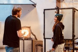Avec leur four transportable, Harmonie et Kévin viennent à la rencontre du public pour partager la magie du verre soufflé. Entre la danse du feu et la fluidité de la matière en fusion, ils proposent des démonstrations spectaculaires et des initiations accessibles à toutes et tous. Venez découvrir un savoir-faire ancestral, la beauté du geste et l’émotion de créer soi-même. Vous repartirez avec un joli gobelet en verre soufflé par vos soins, coloré si vous le souhaitez.